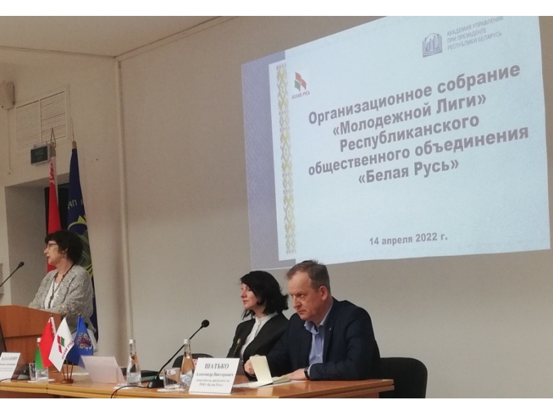 14 апреля 2022 года в конференц-зале Академии управления при Президенте Республики Беларусь состоялось организационное собрание Молодежной лиги Республиканского общественного объединения «Белая Русь». О патриотизме и консолидации общества, о международном сотрудничестве и молодежной инициативе говорили участники собрания. Заместитель председателя РОО «Белая Русь» А.В. Шатько, обратившись к молодежной аудитории, высказал пожелание воспитывать политическую элиту не на лозунгах, а на реальных делах, молодежных инициативах, которые должны реализовываться в жизнь под руководством лидеров Молодежной лиги РОО «Белая Русь».
