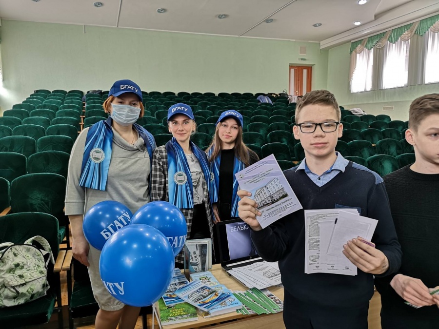 Данное мероприятие вызвало оживленный интерес у учащихся. Стенды учреждений образования привлекали к себе внимание заметным оформлением, цветовой гаммой, иллюстративным материалом. Стенд БГАТУ, выдержанный в цветовой гамме нашего университета, притягивал взгляды учащихся, они останавливались у него для знакомства со специальностями и с интересом слушали наших представителей об особенностях поступления и учебы в нашем учреждении образования, а также уносили с собой рекламную продукцию (буклеты, закладки-линейки, брелоки, блокноты, шарики) с мыслью приехать к нам в качестве абитуриента.