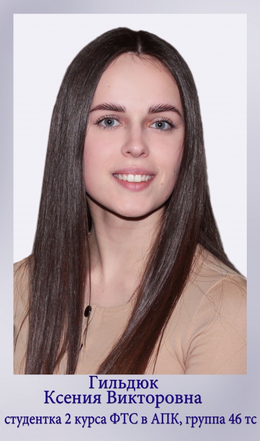Гильдюк Ксении Викторовне, студентке 2 курса 46тс группы (факультет «Технический сервис в АПК»);