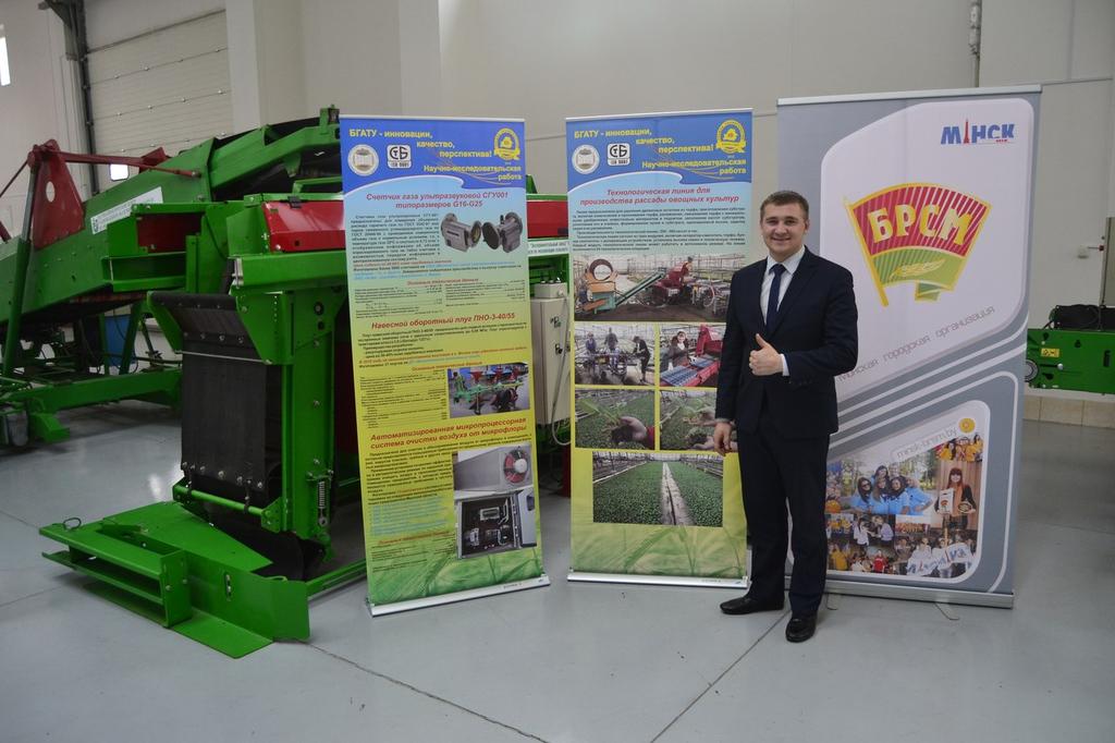 Выставка проекта "100 идей для Беларуси" прошла в учебно-выставочном павильоне БГАТУ 26 октября 2016 года. В ходе выставки посетители познакомились с инновационными разработками в сфере сельского хозяйства и продовольствия, а также увидели первые сельскохозяйственные орудия труда и пришедшие им на смену современные комплексы и машины.