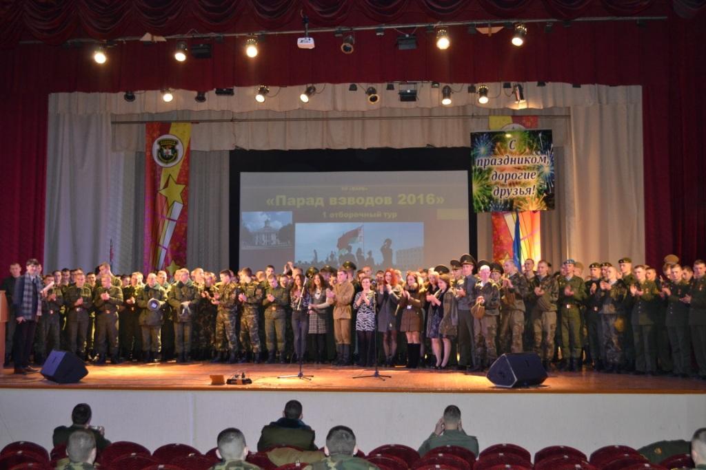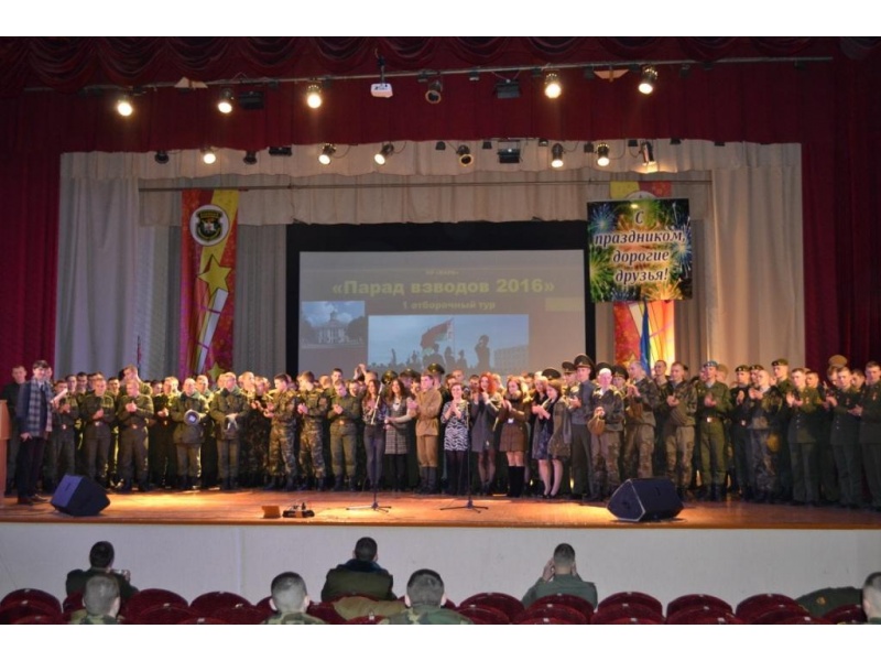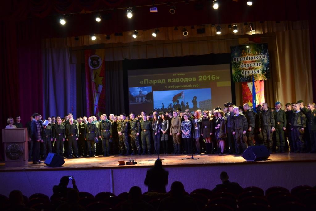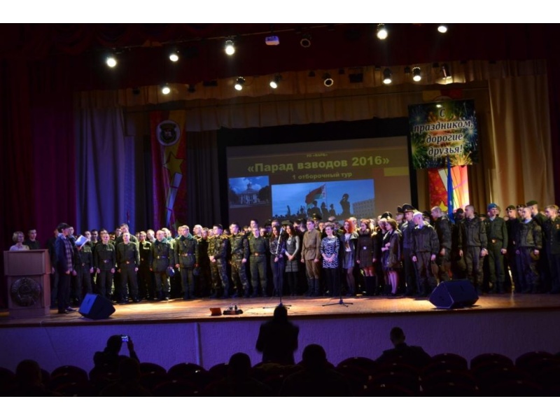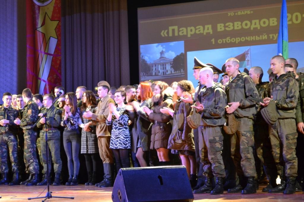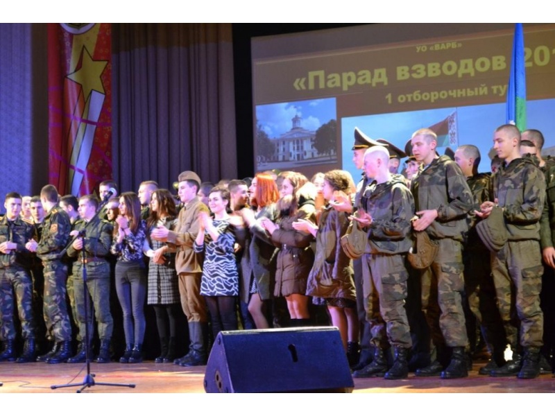 22 ноября 2016 года студенты первого курса АЭФ Архипцова Ирина, Кологрив Виктория (83э группа), Глобаж Диана (14а группа), Безгодова Ирина (18эт группа) и студенты первого курса ФПУ Дробыш Виктория, Ковалева Ольга, Пыко Ольга, Окулич Елизавета, Тараник Екатерина, Янушко Яна, Мешкуть Павел (9 им группа), Эстранова Дарья (10 им группа) и старшие преподаватели кафедры иностранных языков №2 Горощеня З.М. и Сысова Н.В. приняли участие в I туре III Республиканского творческого конкурса проектов на иностранных языках «Парад взводов – 2016», который состоялся в УО «Военная академия Республики Беларусь».