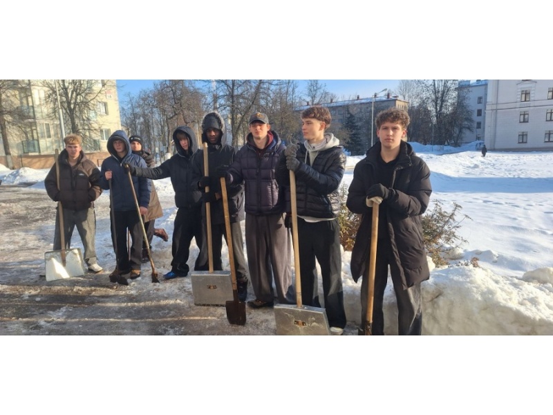 26 февраля 2026 года мужская половинка группы оказала помощь в уборке снега на территории университета.