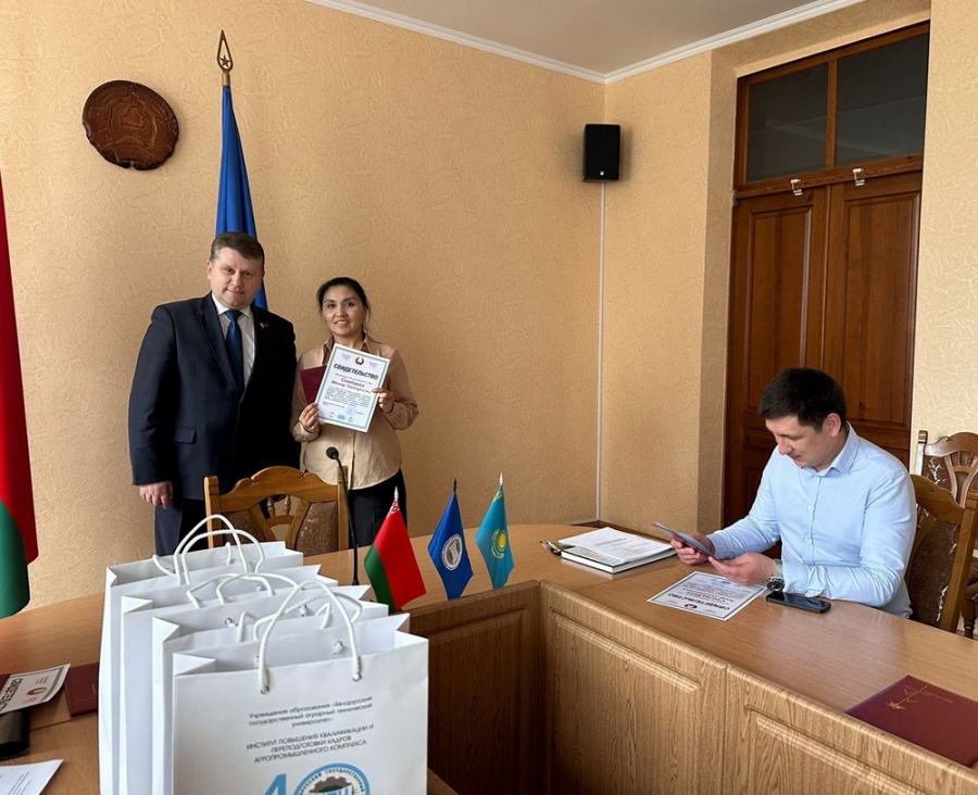 Корпорация «Восток-Молоко» входит в число крупнейших производителей молока в Казахстане. «Восток-Молоко» - это более 80 видов молочной продукции, выработанных из отборного молока и выпускаемых в удобной современной упаковке. На протяжении 20 - летнего периода предприятие неоднократно участвует в различных выставках, ярмарках, а также конкурсах, где завоевывает почетные места. Успехи достигаются слаженной работой коллектива, который постоянно совершенствуется, в том числе и повышая свой профессиональный уровень. Интересны товаропроизводителям из Казахстана и инновации в молочной промышленности Беларуси. В 2022 году ИПК и ПК АПК БГАТУ организовывал обучение специалистов корпорации по программе  «Инновационное развитие отрасли животноводства. Управление молочно-товарными фермами и комплексами». И вот, 14 апреля текущего года завершилась образовательная программа стажировки «Инновационные технологии производства и переработки молока и молочных продуктов. Современные технические решения в производстве молочных продуктов», которую осваивали директор производства и специалисты-технологи корпорации, и реализовывалась она в основном на площадках перерабатывающих предприятий и сельскохозяйственных организаций. Коллеги  оставили положительный отзыв об организации стажировки. Подведение итогов обучения прошло с участием ректора БГАТУ Н.Н. Романюка и генерального директора Белплемживобъединения  Р.В. Березовика. Подписано соглашение о сотрудничестве между БГАТУ и ТОО Корпорация «Восток-Молоко».