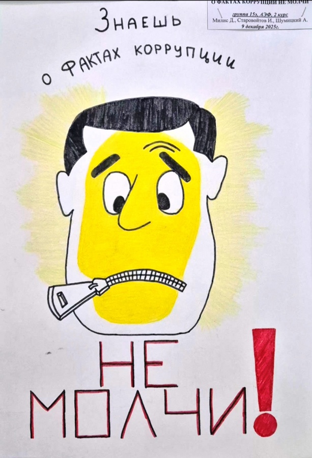9-10 декабря 2025 года в БГАТУ проikf выставка плакатов студентов, приуроченная к Международному дню борьбы с коррупцией и Дню прав человека (куратор выставки старший преподаватель кафедры экономической теории и права Коренная Н.П.).
