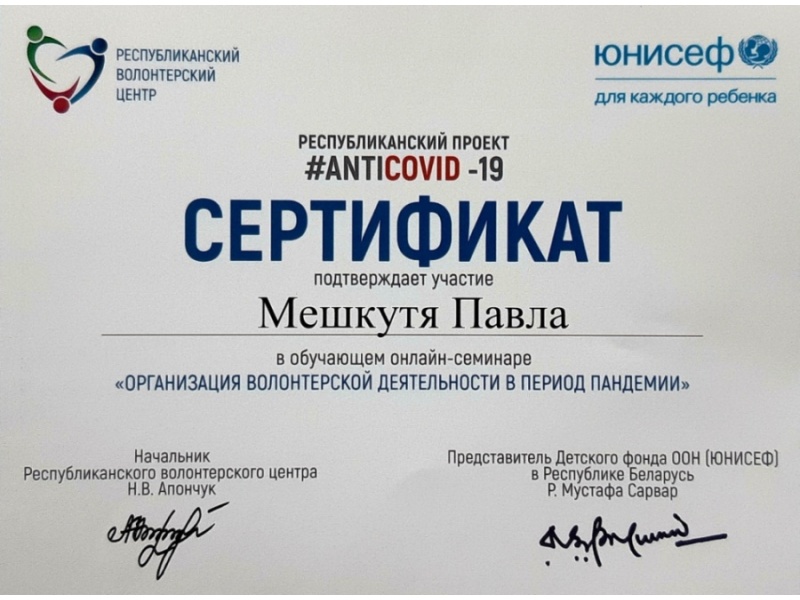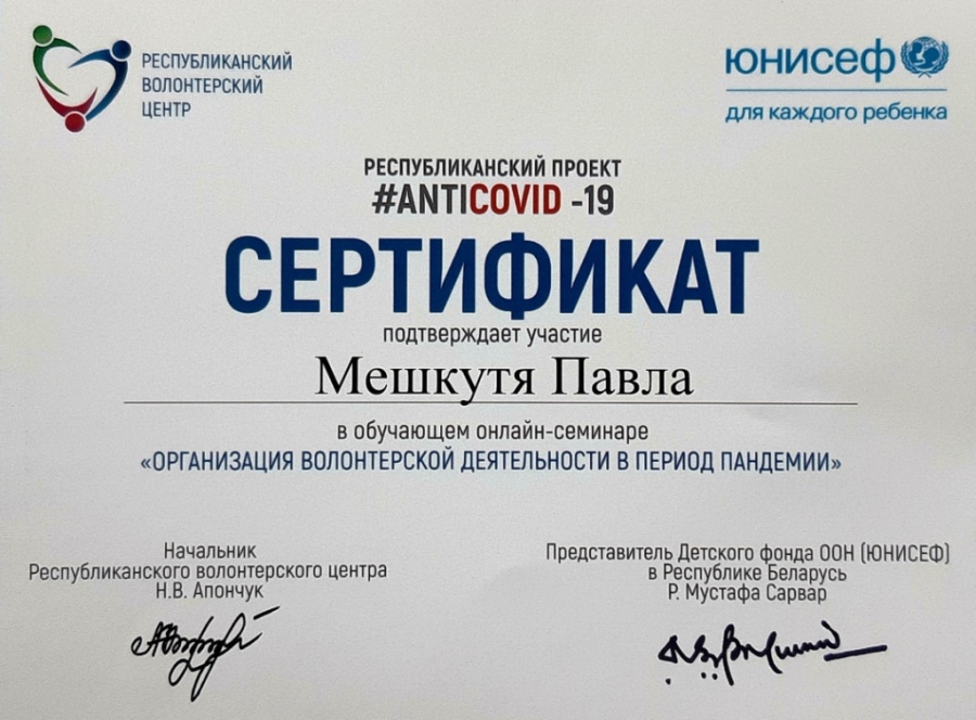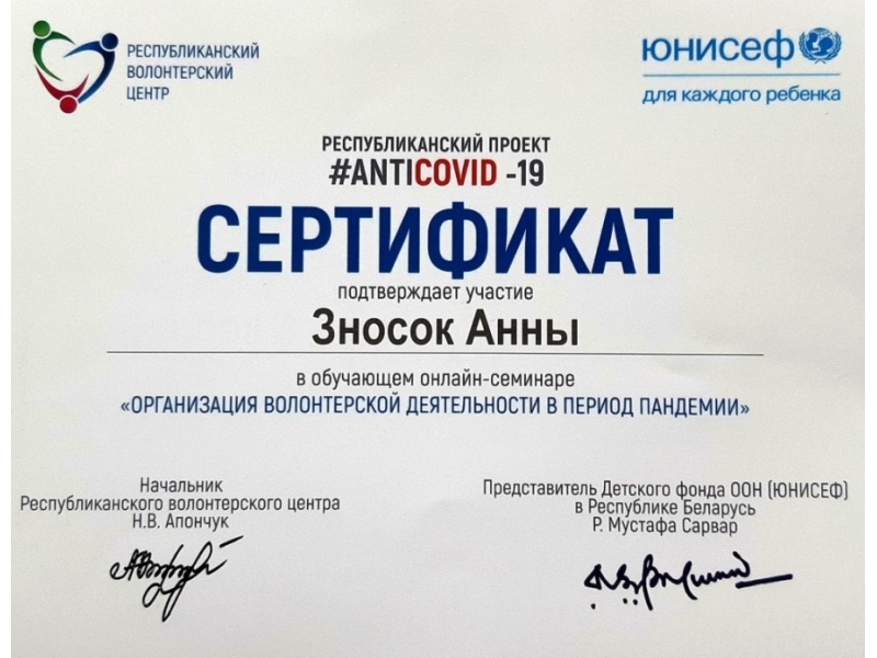 Волонтёры БГАТУ приняли участие в онлайн-проекте#AntiCOVID-19, который стартовал 11 мая 2020 года и был организован при поддержке Детского фонда ЮНИСЕФ в Беларуси на базе Республиканского института высшей школы.