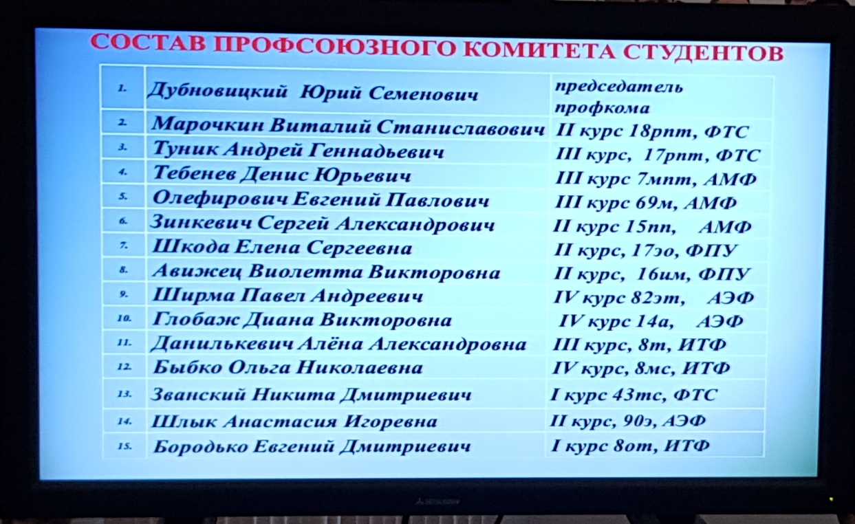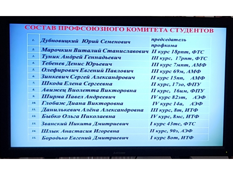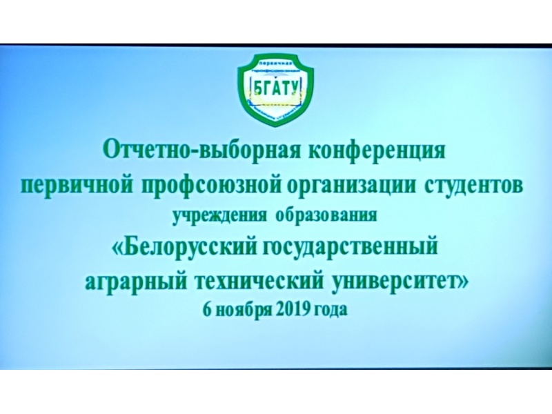 [node:title]06 ноября 2019 года в университете прошла отчетно-выборная конференция первичной профсоюзной организации студентов БГАТУ. Заслушан отчет о деятельности организации за период с 2014 по 2019 годы. Председателем профсоюзной организации студентов Белорусского государственного аграрного технического университета избран Дубновицкий Юрий Семенович. Поздравляем!