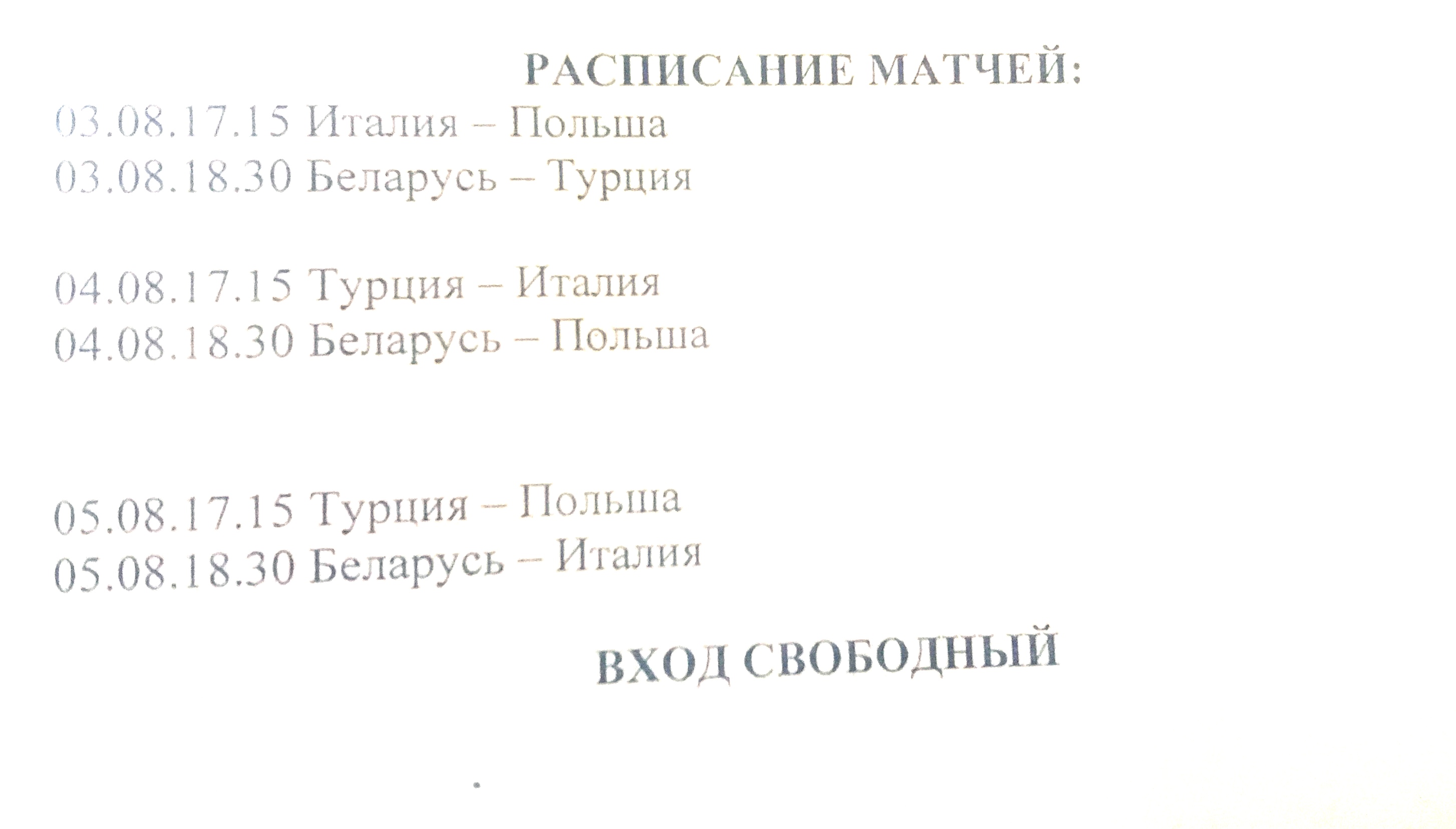31.07.2018Отдел по идеологической и воспитательной работе3-5 августа 2018 года в СОК "Олимпийский" (ул. Сурганова,2А) будут проводиться матчи отборочного раунда Лиги Европы-2018 по пляжному футболу. Приглашаем всех желающих посетить матчи. Вход свободный. Фотогалерея: Теги: здоровый образ жизни