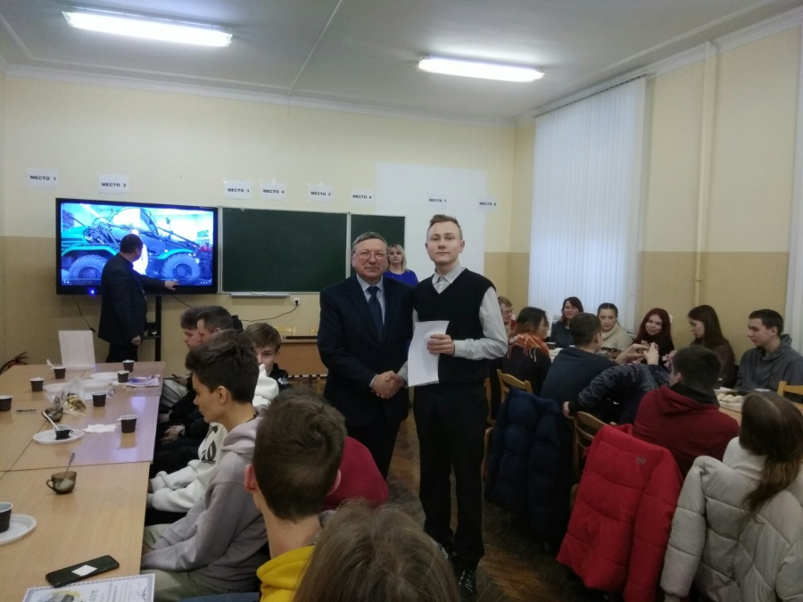 В ходе встречи перед школьниками выступил декан АМФ к.т.н., доцент Ловкис В.Б. Проинформировал об особенностях вступительной компании 2023 года и специальностях БГАТУ.