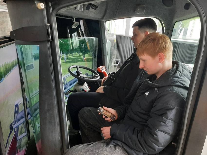 С 5 по 6 мая на базе учреждения образования "Смиловичский государственный колледж" восемь студентов БГАТУ прошли занятия производственного обучения ("Управление колесными тракторами, самоходными машинами категорий "C", "D" и самоходными машинами сельскохозяйственного назначения категории "F", "Подготовка машинно-тракторных агрегатов, самоходных машин к работе и работа на них. Техническое обслуживание и постановка на хранение"), в рамках которого управляли современными машино-тракторными агрегатами на базе колёсных тракторов и тренажёров-симуляторов.