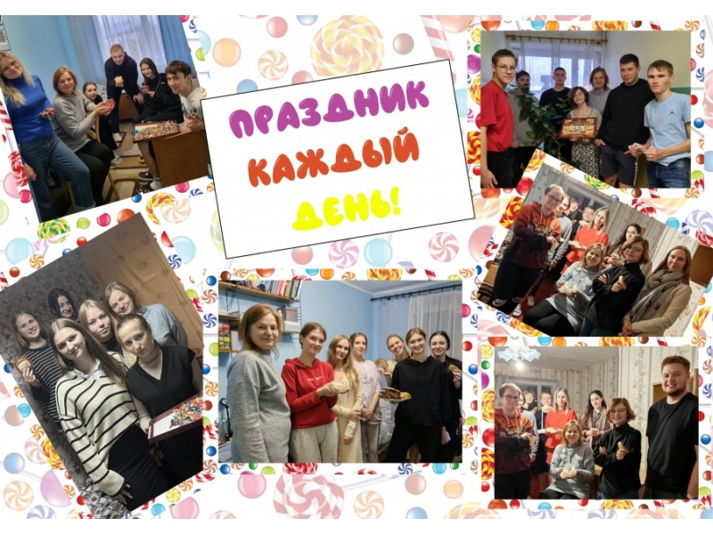 ПРАЗДНИК КАЖДЫЙ ДЕНЬ! Ежегодно 16 октября отмечается Всемирный день хлеба и 18 октября - Всемирный день конфет. В даты этих праздников кураторы групп 21-22им О.В. Данильчик и Н.П. Коренная совместно с заместителем декана по воспитательной работе Л.А.Лопатнюк посетили студенческое общежитие номер 7 и провели информационную акцию со студентам ФПУ, рассказав об истории этих праздников. Важность первого определена обеспечением продовольственной безопасности страны и мира, о чем и прошла беседа за дегустацией разных видов хлеба. В развитие второй акции студентов попросили вспомнить об ярких и сладких моментах своей жизни в университете и угостили конфетами. Довольны остались все!