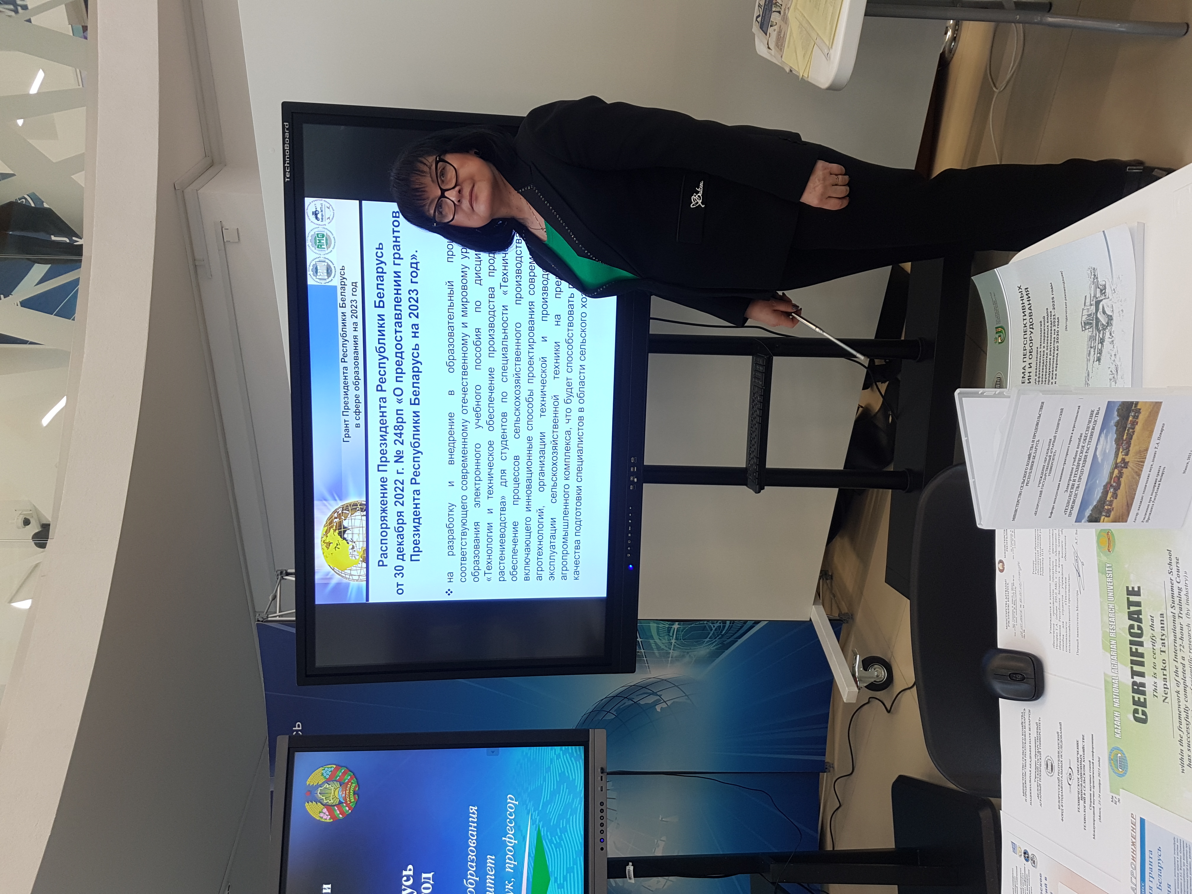 Проект по гранту Президента Республики Беларусь в сфере образования успешно защитила заведующая кафедрой эксплуатации машинно-тракторного парка и агротехнологий БГАТУ, кандидат технических наук, доцент Непарко Т.А., создавшая электронное учебное пособие по учебной дисциплине «Технологии и техническое обеспечение производства продукции растениеводства» для студентов агроинженерного профиля.