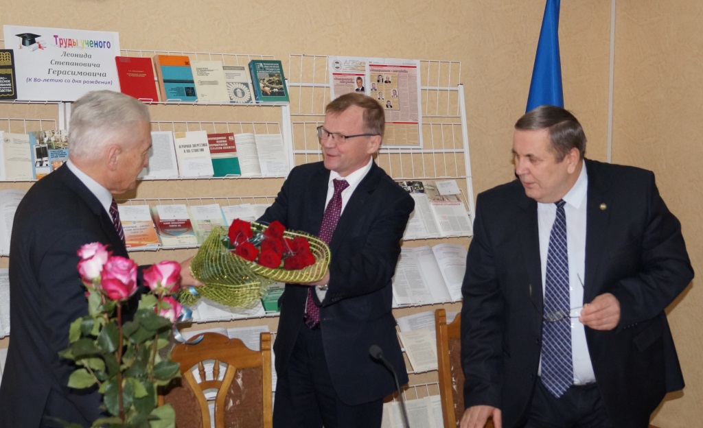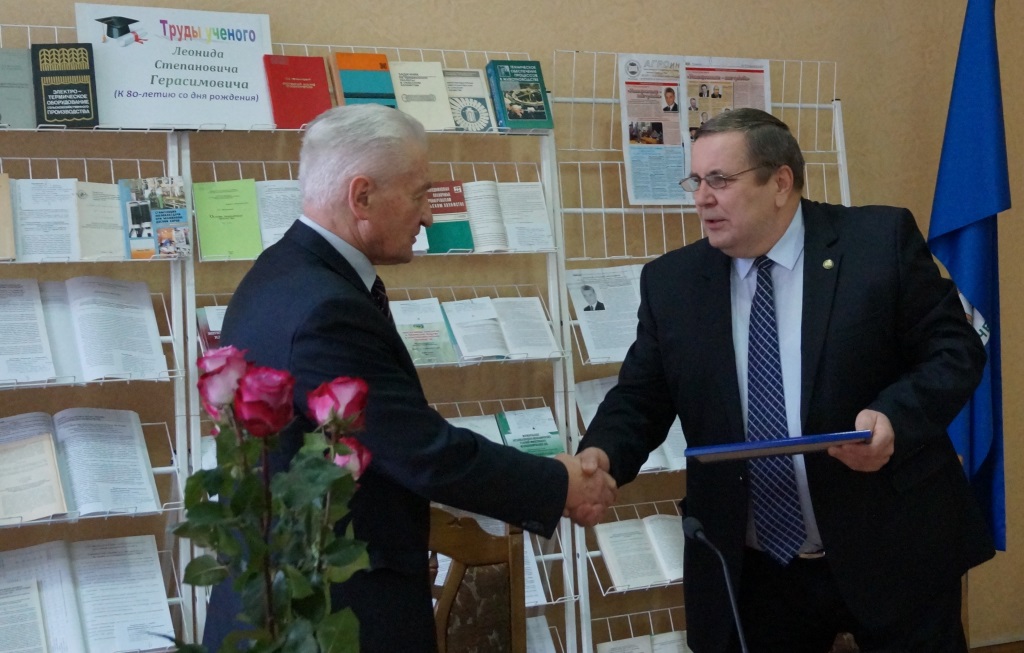 В рамках Дня белорусской науки в БГАТУ прошло торжественное чествование юбиляра, академика Национальной академии наук Беларуси, академика Академии аграрных наук Республики Беларусь, доктора технических наук, профессора Леонида Степановича Герасимовича, которому исполнилось 80 лет.