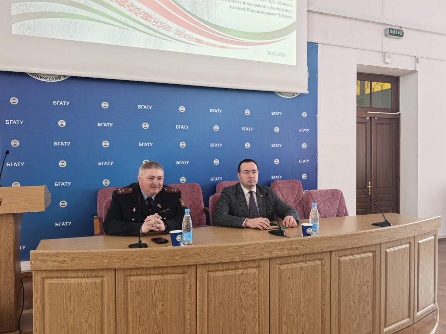 26 февраля 2026 года в БГАТУ прошла диалоговая площадка с участием правоохранительных органов по теме: "Профилактика правонарушений среди молодежи". Со студентами университета встретился заместитель начальника Первомайского РУВД г. Минска по идеологической работе и кадровому обеспечению полковник милиции Алексей Чубаров. Открыл мероприятие проректор по идеологической и воспитательной работе Владимир Синельников. Алексей Владимирович привел примеры распространенных схем мошенничества в интернете.К ним относится Вишинг - вид мошенничества, при котором злоумышленники используют телефонные звонки для кражи конфиденциальной информации или денег. Студенты также узнали, какие новые способы борьбы с мошенниками существуют. Подробно остановился на правилах дорожного движения, в том числе вождение без прав и в алкогольном или наркотическом опьянении. Отдельно остановился на ст. 328 УК РБ "Незаконный оборот наркотических средств, психотропных веществ, их прекурсоров и аналогов". На все поступающие вопросы были даны исчерпывающие ответы.