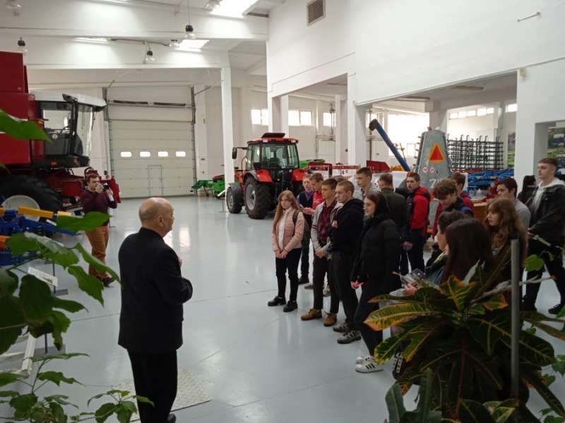 Николай Петрович рассказал учащимся об условиях поступления в университет, специальностях по которым ведется обучение, наличии факультетов и кафедр для подготовки специалистов в сфере АПК, культурной и спортивной жизни университета. Так же, было уделено внимание инфраструктуре студгородка БГАТУ, особенностью которого является шаговая доступность всех учебных корпусов и общежитий. Для будущих абитуриентов проведена обзорная экскурсия по учебно-выставочному павильону кафедры, продемонстрированы новейшие образцы сельскохозяйственной техники, по которым ведется обучение.