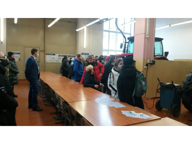 18 февраля 2022 года в рамках профориентационной работы БГАТУ кафедру эксплуатации машинно-тракторного парка посетил посетили учащиеся ГУО «Крупицкая средняя школа» и ГУО «Самохваловичская средняя школа» , которых ознакомили с направлением работы, материально-технической и учебно-методической базой кафедры, с информацией о специальностях университета, преимуществами специальности «Техническое обеспечение процессов сельскохозяйственного производства».