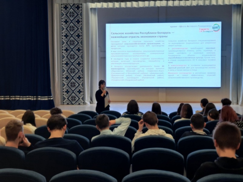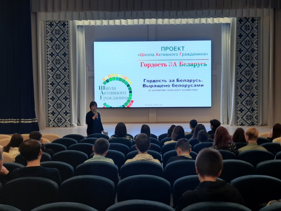 Сотрудники кафедры энергетики 28.04.2022 г. посетили Колодищанскую СШ № 2, для проведения информационно-образовательного проекта «ШАГ» – «Школа активного гражданина» на тему «Гордость за Беларусь. Выращено белорусами». Был представлен информационный блок «Сельское хозяйство Республики Беларусь – важнейшая отрасль экономики страны».