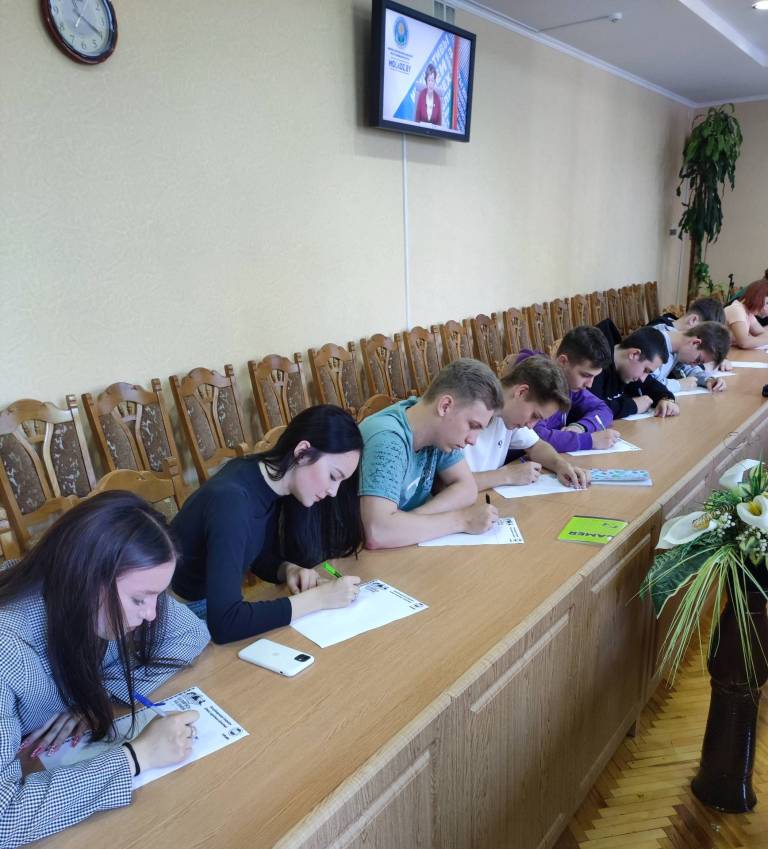 13 сентября 2023 года студенты первого курса университета приняли участие в написании Республиканского диктанта «Дзень народнага адзінства». Текст всем участникам диктанта диктовался через онлайн-трансляцию. Написав его, каждый смог проверить себя самостоятельно. Результат - это не главное. Главное - участие. Написав диктант, каждый студент показал, что он ценит один из важнейших государственных праздников нашей страны. Напомним, что эта неделя для системы образования и всех учреждений образования проходит под девизом Дня народного единства.
