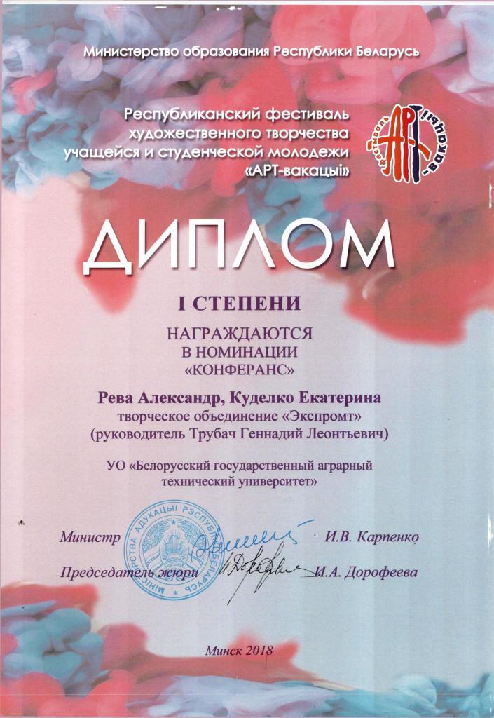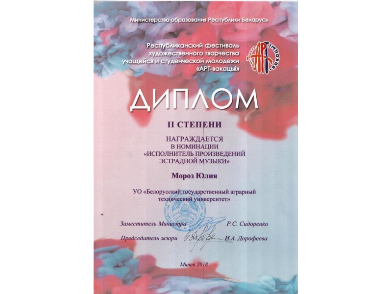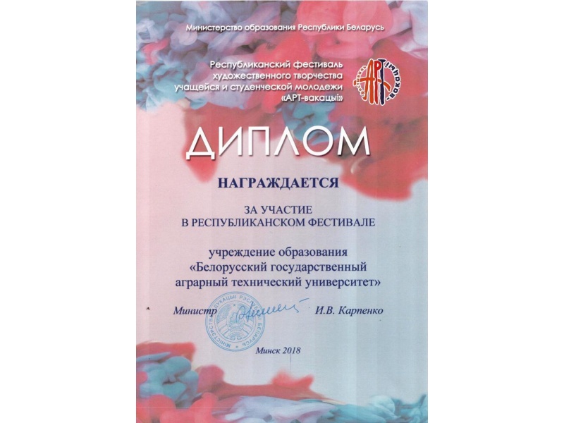 В молодежной столице Беларуси (г. Могилёв) 25-26 мая 2018 прошел республиканский праздник "Молодежь и творчество - история будущего". В программе мероприятия состоялась церемония награждения победителей и призеров республиканского фестиваля художественного творчества учащейся и студенческой молодежи "АРТ-вакацыі", работали интерактивные творческие и профориентационные площадки учреждений высшего образования Беларуси. В празднике приняло участие более 600 студентов белорусских вузов. В формате праздника прошла акция "Студенты - детям" с посещением учреждений образования для детей-сирот и детей, оставшихся без попечения родителей, детей с особенностями психофизического развития.