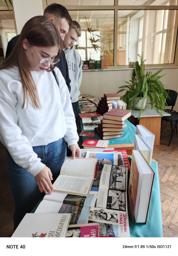 К 80-летию Победы в Великой Отечественной Войне куратор 9м группы, доцент кафедры Пунько Андрей Иванович провел ряд мероприятий с курируемой группой. Посетили Братскую могилу на бульваре Толбухина, где захоронены казненные оккупантами партизаны и подпольщики, а также мирные жители, уничтоженные в результате карательных акций. У братской могилы четырех советских танкистов, почтили память минутой молчания, возложили цветы. В библиотеке университета совместно с ребятами посетил тематическую выставку, увидели военную хронику в книгах, где каждая иллюстрация пропитана событиями тех дней. Проведение таких мероприятий играет важную роль в формировании патриотических ценностей, укрепления национального единства и сохранении исторической памяти.