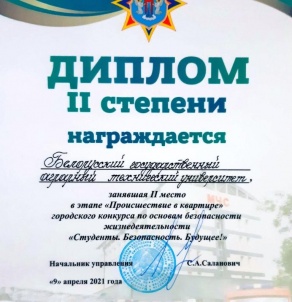 С 6 по 9 апреля 2021 команда БГАТУ приняла участие в городском этапе республиканского конкурса по основам безопасности жизнедеятельности «Студенты. Безопасность. Будущее» .