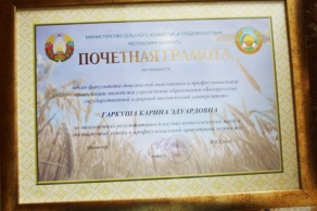 28 февраля 2023 года в Белорусском государственном аграрном техническом университете подведены итоги работы трудового коллектива за 2022 год и определены основные направления деятельности на 2023 год. Начальник главного управления науки образования и кадровой политики Министерства Сельского хозяйства Республики Беларусь Самсонович В.А. наградил Почетной грамотой Министерства сельского хозяйства и продовольствия за многолетнюю плодотворную, добросовестную работу, достигнутые успехи в подготовке высокопрофессиональных кадров для агропромышленного комплекса Почетной... читать далее