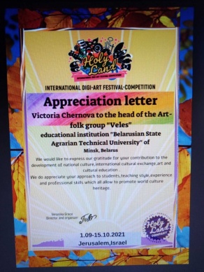 Арт фольк группа "Велес" БГАТУ стала Лауреатом (Диплом 1 степени) Международного конкурса народной песни и танца MARA!
