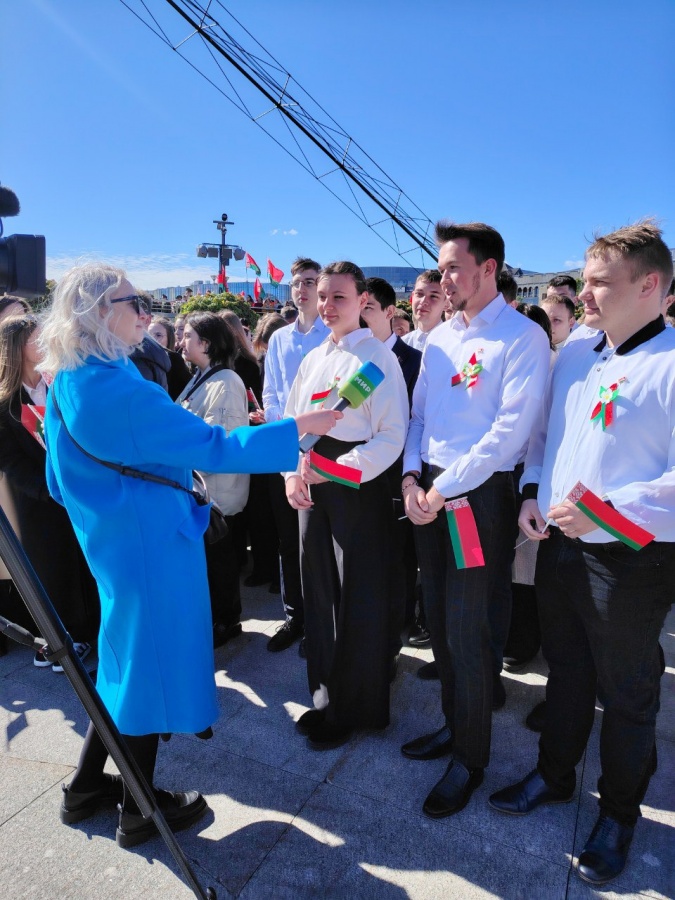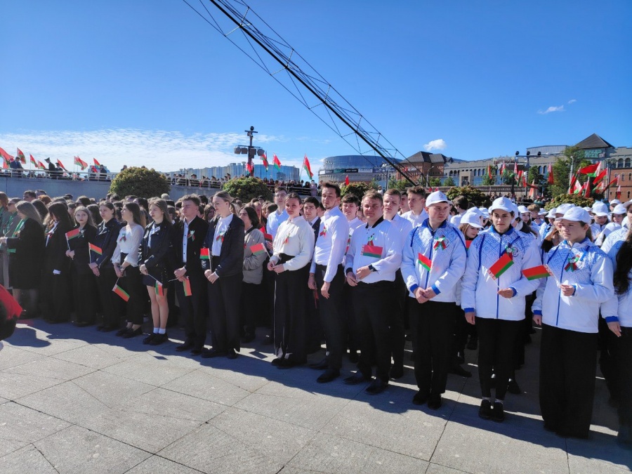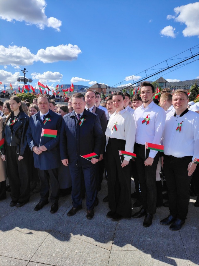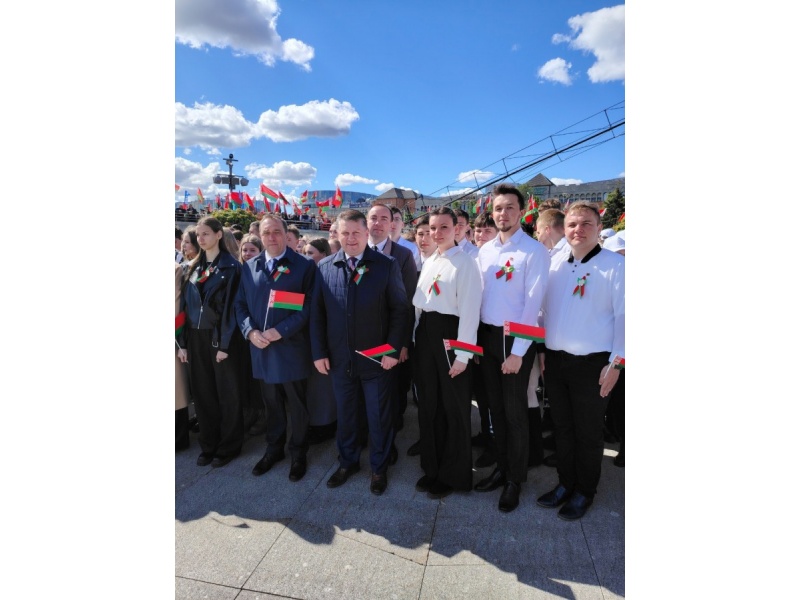 12 мая 2024 года студенты и работники БГАТУ во главе с ректором университета Николаем Романюком приняли участие в торжественном ритуале чествования государственных символов Беларуси на площади Государственного флага в Минске.
