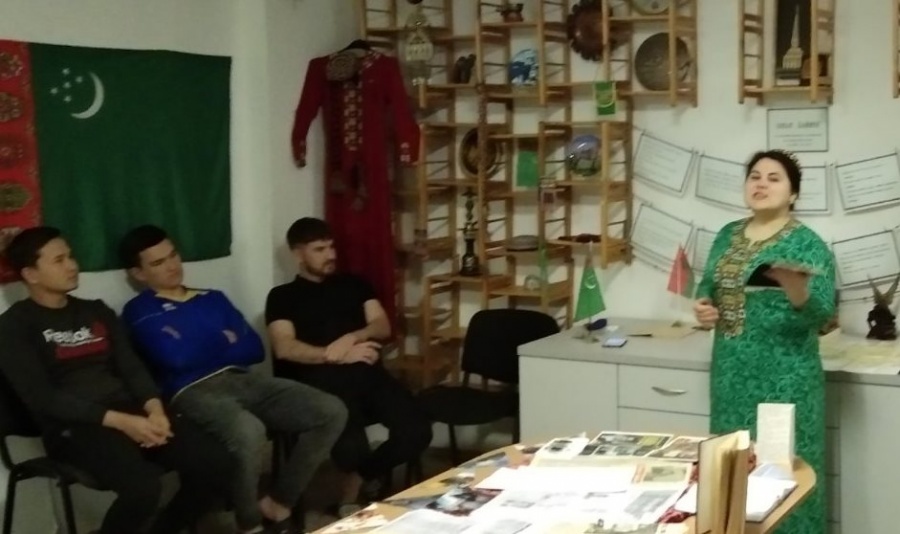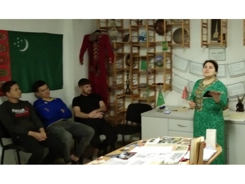 11 ноября 2020 года на базе Клуба интернациональной дружбы (общежитие №7 БГАТУ) прошло поликультурное образовательное мероприятие "Туркменские традиции: история и современность". Ведущая Гурбангельдыева Огулмайса, представитель диаспоры туркменских обучающихся, рассказала, что Туркмены – это не просто один из восточных народов. Культура туркмен несколько отличается от культурных традиций соседских мусульманских центральноазиатских государств. Каждый народ имеет свои ценности, в том числе и туркмены. «Материальное благосостояние – для туркмена очень большая ценность; Конь для туркмена - символ джигитской психологии, мужского шовинизма. Особое уважение выражается в отношении к родителям".