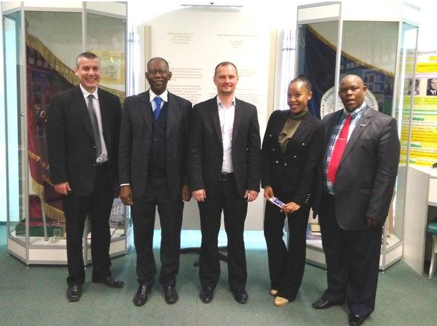 Состоялся визит в БГАТУ делегации провинции Фри Стейт ЮАР в составе директора программы социальной помощи населению г-жи Мазибуко, советника премьер-министра провинции Фри Стейт профессора Мокади, начальника отдела спорта, культуры и искусства при кабинете премьер-министра провинции Фри Стейт г-на Малопе и Первого секретаря отделения Посольства ЮАР в РБ г-на Гомеса.