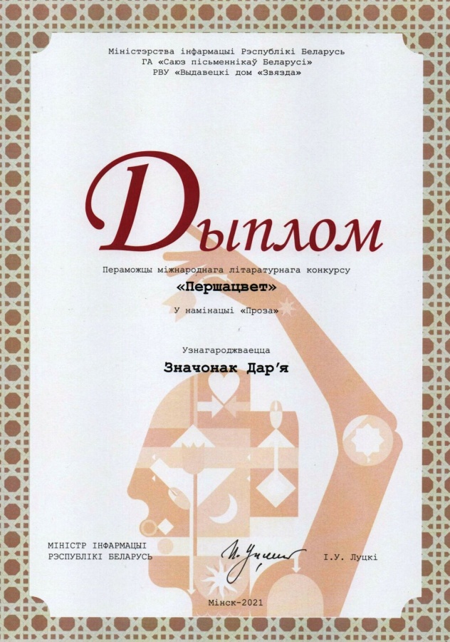 У намінацыі проза пераможцам стала рэдактар Выдавецка-паліграфічнага цэнтра БДАТУ Значонак Дар’я. Віншуем!!!