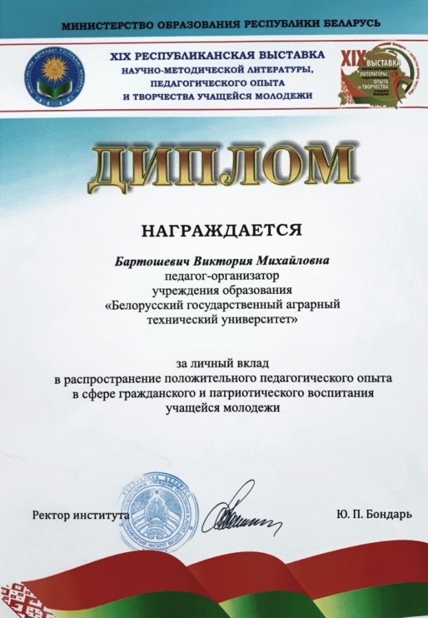 [node:title]с 14 по 16 апреля 2021 года в выставочном комплексе «БелЭкспо» прошла XIX Республиканская выставка научно-методической литературы, педагогического опыта и творчества учащейся молодежи. Выставка посвящена Году народного единства.  Цель выставки – обобщение и распространение эффективного педагогического опыта, поиск новых решений по формированию у детей и молодежи гражданской ответственности, патриотизма, национального самосознания и гражданской идентичности. Организатором выставки выступает Министерство образования Республики Беларусь. ️В рамках экспозиции БГАТУ на выставке были  организованы мастер-классы по боксу, оригами; представлены: литературно-музыкальный дайджест, тематические галереи, стендовые презентации.